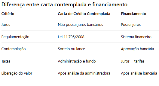 Diferenças entre carta contemplada e financiamento
