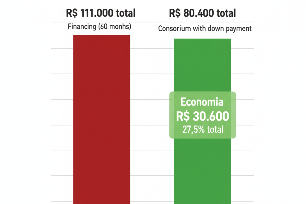 João foi sorteado em um consórcio de R$ 80 mil. Mas ele não precisa mais do carro. Ele vende sua carta para você por R$ 68 mil (15% de desconto). Você economiza R$ 12 mil vs comprar novo, e consegue o carro em 1 mês (não em 2 anos).