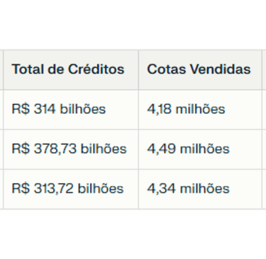 R$ 313,72 bilhões em créditos comercializados (Jan-Ago 2025)